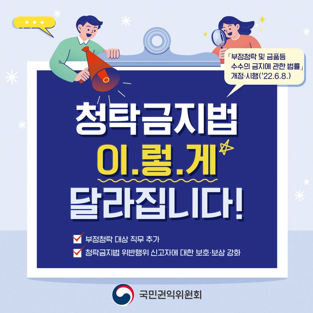 「부정청탁 및 금품등 수수의 금지에 관한 법률」 개정사항 알림